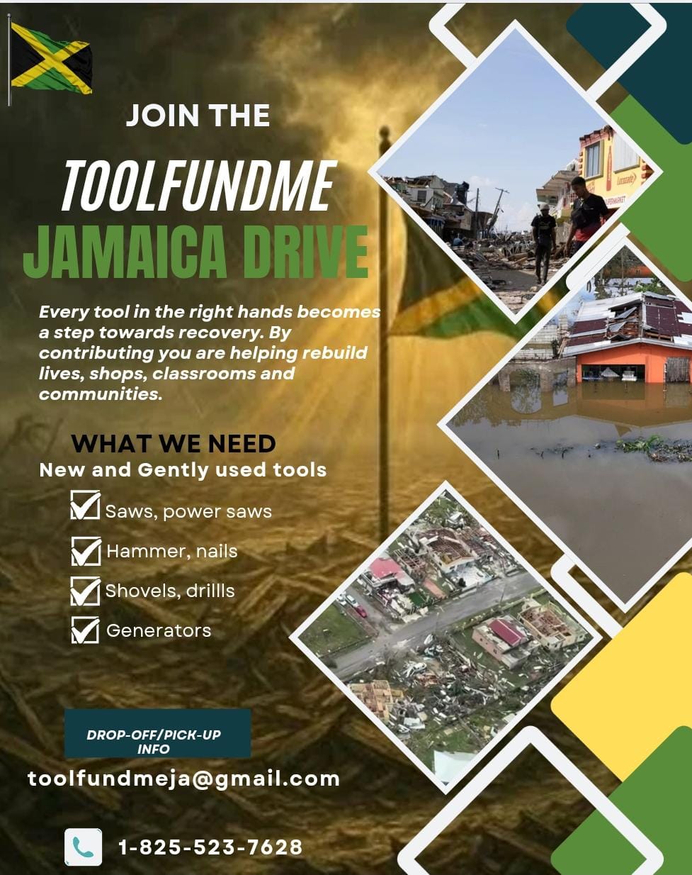 We are calling on the Jamaican Diaspora in Edmonton, to support our tool drive we urgently need new and use tools – hammers, saws, drills nail, shovel power saw, generators and anything that can help rebuild homes, schools and business. Your donation can make the difference because every tool in the right hands becomes a step towards recovery.